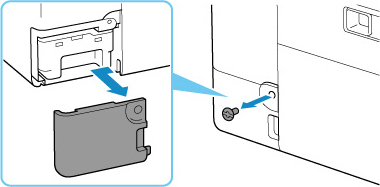 Rikta in fliken på baksidan av underhållsluckan efter hålet på skrivaren och stäng luckan.
