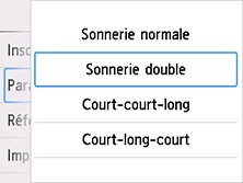 • Paramètres de sonnerie (Sonnerie normale/Sonnerie double/Court-court-long/Court-long-court)