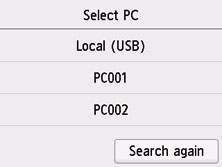 Selectaţi opţiunea Local (USB), pentru un computer conectat prin USB sau selectaţi computerul către care se transmit datele scanate, în cazul unui computer conectat la o reţea.
