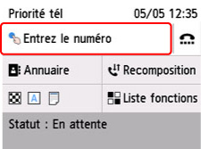 I: Sélectionnez pour afficher l'écran de saisie des numéros de fax/téléphone.