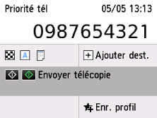L'écran tactile est remplacé par l'écran d'attente de fax.