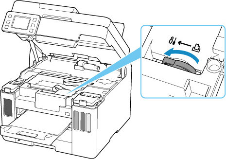 Închideţi supapa de cerneală înclinând pârghia supapei de cerneală complet spre stânga.