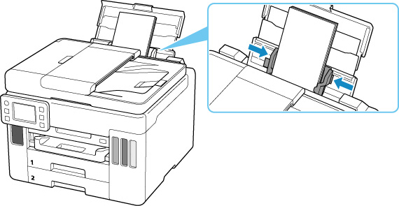 Glisaţi ghidajul pentru hârtie (C) din dreapta pentru a deschide ambele ghidaje pentru hârtie.