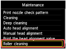 Wählen Sie Walzenreinigung (Roller cleaning) aus, und drücken Sie dann die Taste OK.