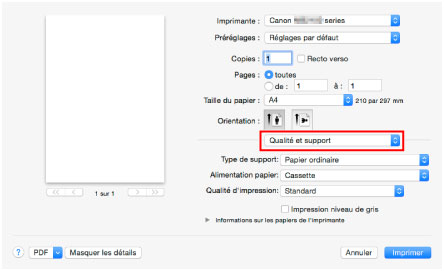Sélectionnez Qualité et support dans le menu déroulant.