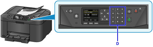 Faksa numura ievadīšanai izmantojiet papildtastatūru (D).