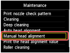 Vyberte možnosť Manuálne zarovnanie hlavy (Manual head alignment) a potom stlačte tlačidlo OK.