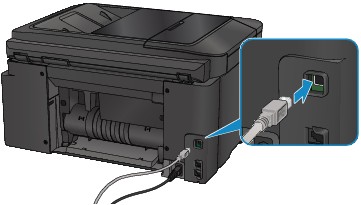 كما هو موضح أدناه، يوجد منفذ USB في الجزء الخلفي من الطابعة.