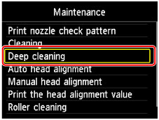 Válassza a Fokozott tisztítás (Deep cleaning) elemet, majd nyomja meg az OK gombot.