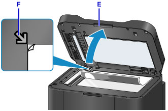 Laadige originaal nii, et esikülg jääb ALLA ja dokument on joondatud joondustähisega (F).