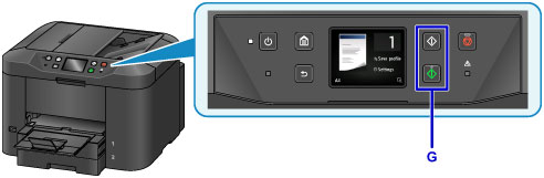 Kontrollige paberimääranguid ja seejärel vajutage nuppu Must režiim (Black) või Värvirežiim (Color) (G).