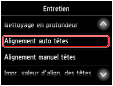 Si l'impression n'est toujours pas satisfaisante après l'alignement automatique de la tête d'impression, procédez à un alignement manuel de la tête d'impression.