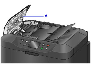 Pyyhi paperipöly puhtaalla kankaalla syöttölaitteen kannen (A) sisäpuolelta.