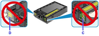• Non toccare il contatto (C) o l'interfaccia (D) del serbatoio d'inchiostro.