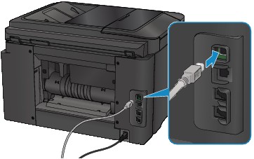 Koble skriveren til datamaskinen med en USB-kabel som vist i illustrasjonen nedenfor. USB-porten er plassert på baksiden av skriveren.