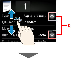 Touchez B pour afficher l'écran de sélection du nombre de copies.