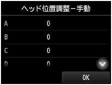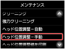 参考- [ヘッド位置調整値を印刷]を選ぶと、現在の設定を印刷して確認することができます。