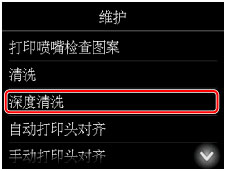 如果标准打印头清洗无法改善打印质量,请尝试深度打印头清洗。 但是,由于深度打印头清洗会消耗更多的墨水,因此建议仅在需要时执行该操作。