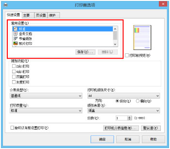 在快速设置选项卡上的常用设置中,选择合乎打印用途的配置文件。
