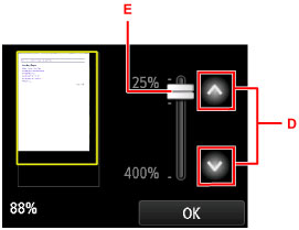 Καθώς βλέπετε την προεπισκόπηση στα αριστερά, σύρετε στο ρυθμιστικό (E) προς τα επάνω ή κάτω για να μικρύνετε ή να μεγεθύνετε την εικόνα.