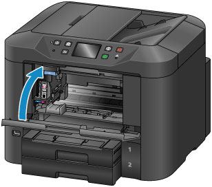 - Wenn Sie die vordere Abdeckung länger als 60 Minuten geöffnet lassen, bewegt sich der Druckkopfhalter nach rechts. In diesem Fall sollten Sie die vordere Abdeckung schließen und erneut öffnen.