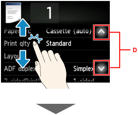 Avaa kopiomäärän valintanäyttö napauttamalla B.
