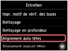 Si l'impression n'est toujours pas satisfaisante après l'alignement automatique de la tête d'impression, procédez à un alignement manuel de la tête d'impression.