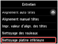 Remarque- Utilisez une nouvelle feuille de papier pour répéter l'opération de nettoyage de la platine inférieure.