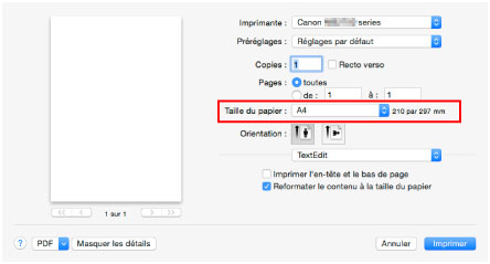 Dans Taille du papier, sélectionnez la taille de papier à utiliser.