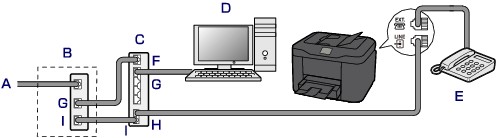 To su primjeri i ne jamči se da odgovaraju svim uvjetima priključivanja. Pojedinosti potražite u priručniku s uputama koji ste dobili uz mrežni uređaj (upravljački uređaji kao što su xDSL (digitalna pretplatnička linija) modem i terminalski prilagodnik) koji priključujete na ovaj pisač.
