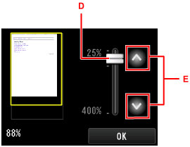 查看左侧的预览图像时,向上或向下拖动滑块(E)以缩小或放大图像。