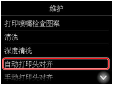 重要事项- 执行维护屏幕中的任何操作时,不会显示页尺寸和介质类型的注册屏幕。 因此,即使装入的纸张不是A4或Letter尺寸的普通纸,仍会执行打印。