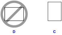 قم دائمًا بتحميل الورق بالاتجاه الطولي (C). قد يؤدي تحميل الورق بالاتجاه العرضي (D) إلى انحشار الورق.