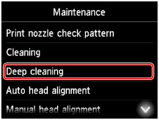 Nếu làm sạch đầu in thông thường không cải thiện chất lượng in, thử làm sạch sâu đầu in. Tuy nhiên, việc làm sạch sâu đầu in sẽ tiêu tốn mực, do đó chỉ nên thực hiện thao tác này khi cần thiết.