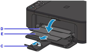 قم بمد دعامة إخراج الورق (E).