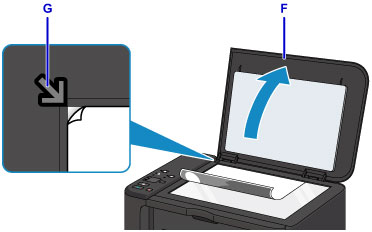 Ievietojiet oriģinālu ar KOPĒJAMO PUSI UZ LEJU un izlīdziniet tā, lai tas būtu vienā līmenī ar līdzināšanas atzīmi (G).