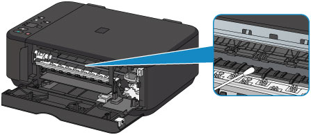 Jeśli problem występuje nadal po ponownym czyszczeniu, zabrudzone mogą być występy we wnętrzu urządzenia. Zetrzyj atrament z wystających elementów za pomocą np. wacików bawełnianych.