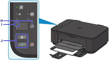 11. Tekan tombol Kertas(Paper) (H) untuk menyalakan lampu Kertas(Paper) bagian atas (I).