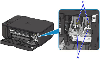 Nepieskarieties daļām A vai aiz tām esošajiem elektriskajiem kontaktiem B. Ja tiem pieskarsieties, ierīce var nedrukāt pareizi.
