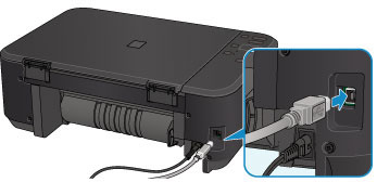 Kết nối máy và máy tính sử dụng cáp USB như được minh họa bên dưới. Cổng USB nằm ở mặt sau của máy.