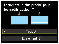 Sur l'écran de confirmation, sélectionnez le motif le plus proche du motif de vérification des buses imprimé.