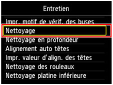 6. Sélectionnez Nettoyage et appuyez sur le bouton OK.