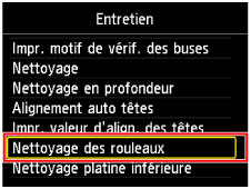 Sélectionnez Nettoyage des rouleaux et appuyez sur le bouton OK.