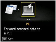 Tekan tombol Fungsi(Function) kiri (G) untuk memilih Smpn/Truskan(Save/Forward). Layar untuk memilih tujuan menyimpan atau meneruskan data foto yang dipindai akan muncul.