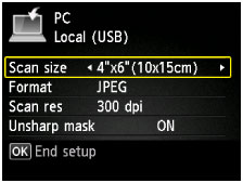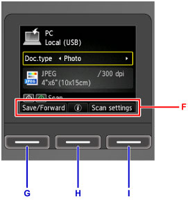 Tekan tombol Fungsi(Function) kanan (I) untuk memilih Setelan Pindai(Scan settings). Layar setelan pindai akan muncul.
