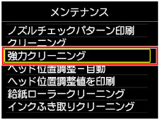 プリントヘッドのクリーニングを行っても効果がない場合は、強力クリーニングを行ってください。強力クリーニングは、通常のクリーニングよりインクを消耗しますので、必要な場合のみ行ってください。