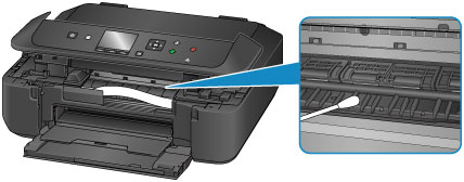 Hvis problemet ikke er løst etter at du har rengjort to ganger, kan det hende at de fremstående delene inne i maskinen er skitne. Bruk en bomullspinne eller lignende til å tørke bort blekk.
