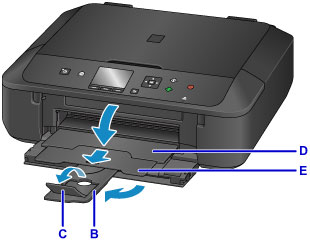 Extindeţi suportul de ieşire a hârtiei (E).