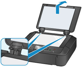Suspenda a tampa de documentos verticalmente e incline-a para trás.