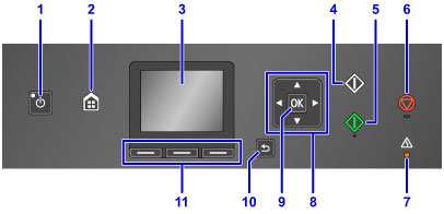 Opreşte sau porneşte imprimanta. Luminează după ce clipeşte la pornirea alimentării. Înainte de a activa alimentarea, asiguraţi-vă că aţi închis capacul pentru documente.